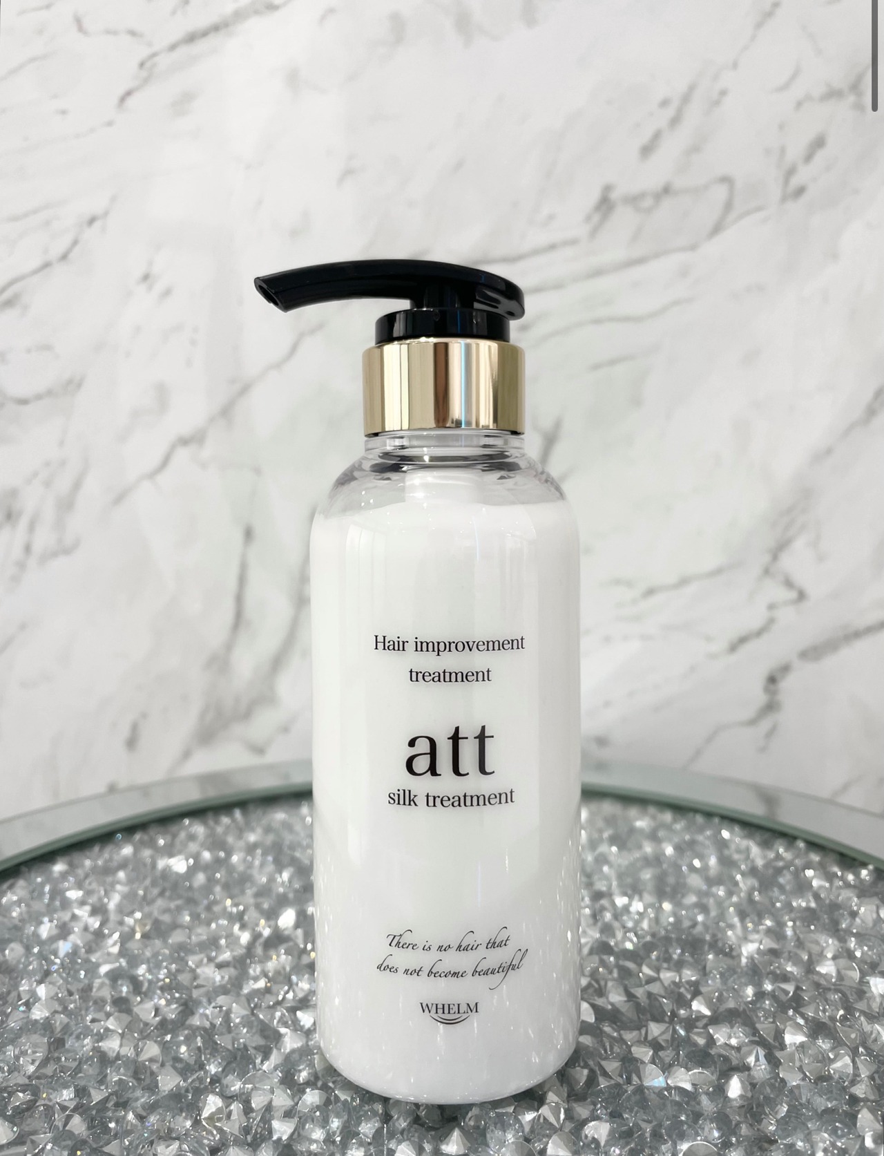 attシルクトリートメントにattシルクデザインオイルを1プッシュ手のひらで混ぜてから塗布後、毛先から優しくクシやブラシ等でとかして、しっかり洗い流してください。