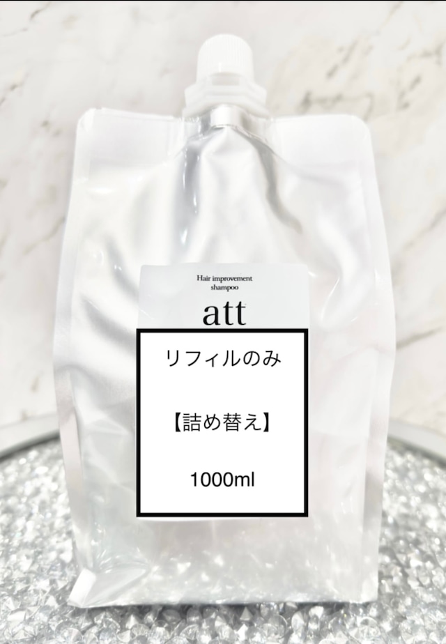 att THE ONE 300mlに詰め替えて使用してください。 att THE ONEは”ただ洗う”のではなく、“髪と頭皮をベストな状態に優しくリセット”するために独自のバランスで設計された【一家に一本必要不可欠】なシャンプーです。 清涼感のある、控えめで上品なシルクホワイトリリーの香り 一般的なクレンジングシャンプーは、強い洗浄成分で汚れを引き剥がすタイプが多い中、att THE ONEは全く違います。 特殊なオイル成分+特殊な乳化型シリコーンを駆使し、強い洗浄力に頼らずに、汚れ・皮脂・被膜成分・スタイリング剤残留物質を優しく乳化して包み込んで浮かせてリセット。 頭皮や髪に負担となる石油系、高級アルコール系不使用。 頭皮や髪に必要な潤い、脂質を残し、髪も地肌も乾燥させない、頭皮や髪の未来を考えた独自のリセット処方。 ◆一般クレンジングシャンプーとatt THE ONEの比較 ・汚れの落とし方 一般:強い界面活性剤で皮脂・汚れを”剥がす” att THE ONE:特殊オイル・乳化型シリコーンで汚れを”浮かせてリセット” ・洗浄力 一般:洗浄力が強く、頭皮や髪が乾燥しやすくダメージする att THE ONE:石油系、高級アルコール系不使用。頭皮や髪に対して最小限の洗浄力+保湿力 ・髪の質感 一般:ギシギシ・パサパサしやすく、切れ毛や枝毛の原因に att THE ONE:根元からふんわり・サラサラ ・頭皮への刺激 一般:比較的強く、フケや痒みが出やすい。乾燥や炎症により、頭皮環境の悪化がしやすい att THE ONE:超低刺激設計により炎症が起こりにくく、頭皮環境も整いニオイも抑制 洗った直後から”髪も頭皮も素の健康な状態に導く”事で、その後のトリートメントの浸透性、栄養成分の吸収が抜群に上がります。 トリートメントの持続力が上がり、サロン施術後の美しさを長持ちさせます。 ◆具体的な効果・効能 1.ダメージ補修効果 【ヘマチン】が毛髪内部に浸透し、ケラチンタンパクの結合を補修・強化します。 → ダメージホールを埋めて髪の密度を高め、枝毛・切れ毛を防ぎます。 → カラーやパーマ、縮毛矯正後のダメージの要因となる残留物質を 分解し、サロン施術を長持ちさせる。 毛母細胞活性化による育毛サポート効果もあり。 メラニン生成促進効果により、白髪予防サポートにも期待できる成分。 【グルタミン酸】によるアミノ酸補給保湿。 2. 頭皮環境の改善効果 【メマツヨイグサ種子エキス】【グリチルリチン酸2K】【ピロクトンオラミン】が、頭皮の炎症・赤み・かゆみを抑制。 → 乾燥フケ、脂性フケの発生を防ぎ、健康な頭皮を保ちます。 毎日の使用でも頭皮や髪に負担にならず、敏感肌対応のシャンプー設計。 3. 抗酸化・エイジングケア効果 【スーパーオキシドジスムターゼ(SOD)】【ルイボスエキス】による強力な抗酸化作用。 → 活性酸素による頭皮老化を防ぎ、薄毛・細毛、予防にも繋がります。 紫外線やストレスによる酸化ダメージから、頭皮・毛髪を守ります。 4. 頭皮の清浄・ニオイケア効果 【サピンヅストリホリアツス果実エキス】 天然のサポニン(植物由来界面活性剤)豊富。 頭皮の洗浄・整肌効果を持ちつつ、極めてマイルドな洗い上がり。 フケ防止、かゆみ抑制、頭皮環境改善に効果的。 【(クロロフィリン/銅)複合体】 天然由来の抗酸化・消臭成分。 頭皮の酸化抑制・ニオイ抑制効果に優れ、頭皮ケア効果を補強。 ⭐︎このようなお悩みの方にオススメ ・ビルドアップ(重くゴワゴワ)してベタついて髪が乾かない ・重めのオイル類、シリコーン(被膜)が残留した癒着毛 ・スタイリング剤・オイル・スプレーを頻繁に使う ・皮脂が多めで頭皮や髪がべたつきやすい ・トリートメントの効果を感じにくい ・カラー、ブリーチ、パーマ、縮毛矯正でダメージが気になる ・頭皮が敏感・乾燥している人(刺激に弱い ・加齢による髪質変化(細毛・抜け毛)が気になる ・ぺたっとしやすくボリュームが出にくい ・地肌のムズムズ感、ニオイが気になる 【使用方法】 38〜40度以下のお湯で3分程度予洗い後、適量を泡立てて頭皮をマッサージするようにシャンプー。 毎日使用も可能ですが、重くなりやすい方はattシルクシャンプー、attビューティスキンケアソープの前に、att THE ONEをプレシャンプーとして軽く泡立てて使用する事で、その後のシャンプーやトリートメントの栄養成分を促進し、より効果的にアプローチができます。 毎日ではなくても、サポートとして3日に1度使用する事で、頭皮や髪の環境も健康的な素髪の状態に整い、乾きやすい本来のサラサラ質感に導きます。 【シャンプーとしての使用目安量】 ショート・ボブ 1プッシュ ミディアム(鎖骨) 1〜2プッシュ セミロング・ロング 2〜3プッシュ ※毛量や状態によって適正量は変動します